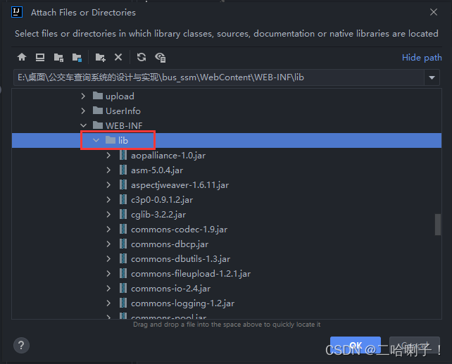 找到此项目中的 lib 文件(jar包所在的本地路径)并选择,点击【OK】