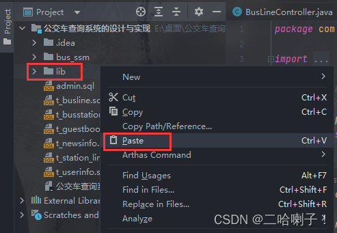 回到项目,将需要导入的jar包直接复制粘贴进lib文件夹即可