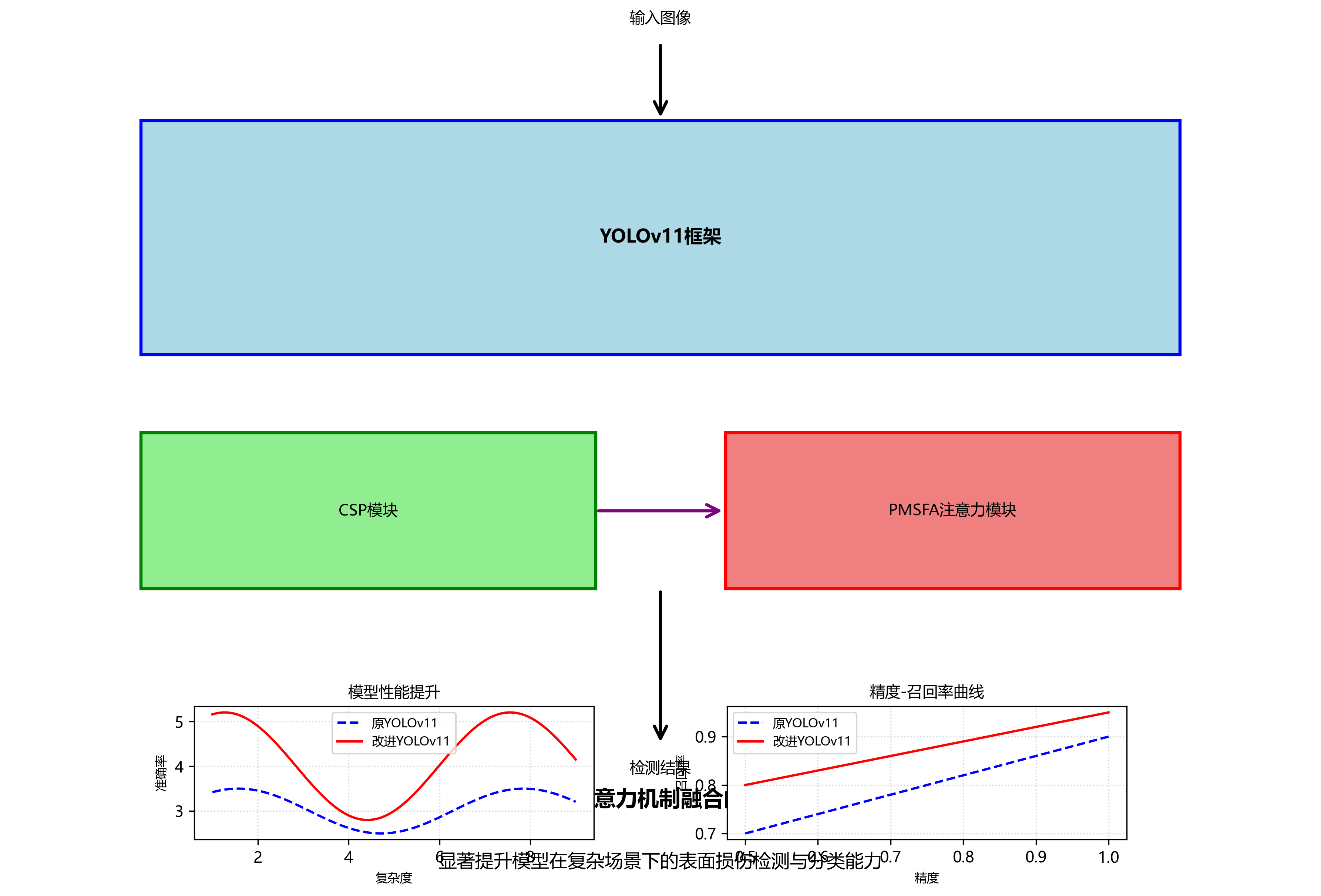 针对这些问题,我们提出了基于CSP与PMSFA注意力机制融合的YOLOv11改进方法,显著提升了模型在复杂场景下的表面损伤检测与分类能力。