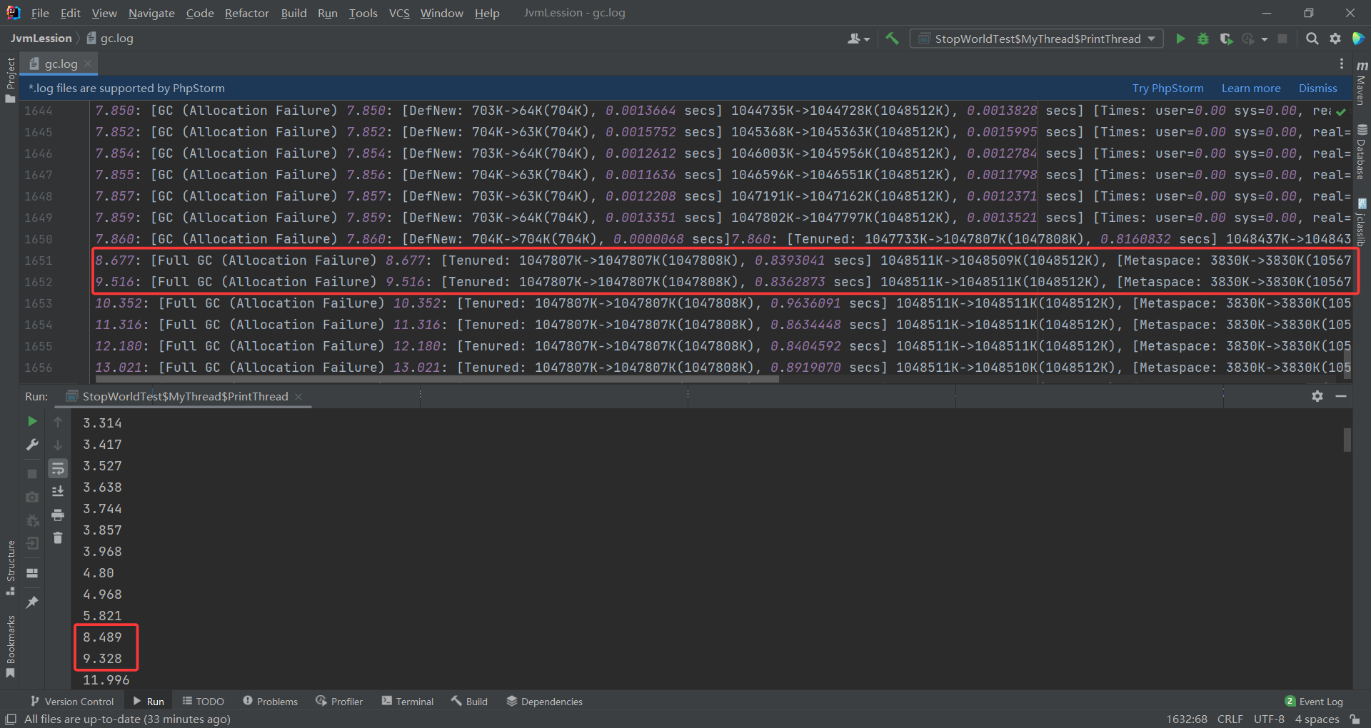 我们来看如下代码,直观观测 JVM 的 STW 现象: