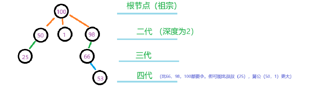 兄弟节点:同一个父节点的孩子我们称之为兄弟节点- 在树形结构中,"大小"或"远近"这种关系