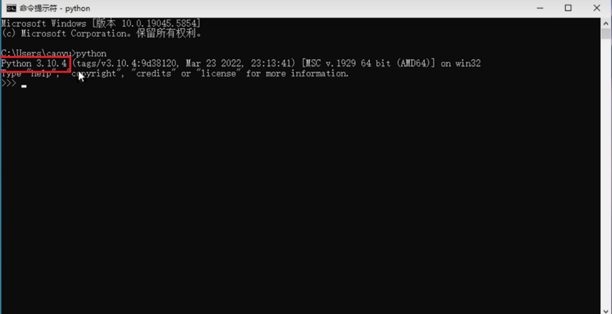 如图,看到Python 3.10.4字样,即表明安装成功。