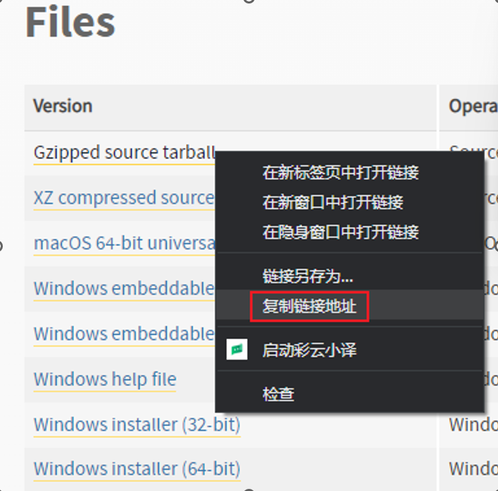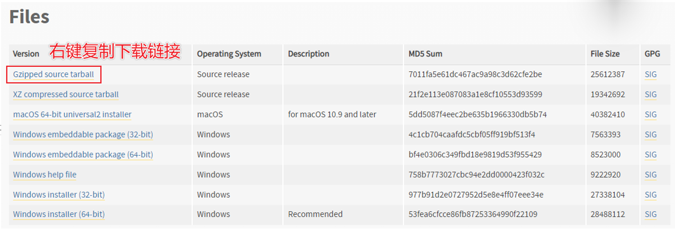 - 找到Gzipped source tarball按钮,点击右键,选择复制链接