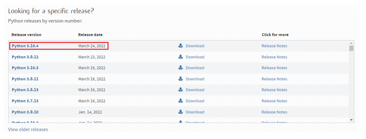 - 点击后在弹出的网页内, 点击最新的python3.10.4的按钮