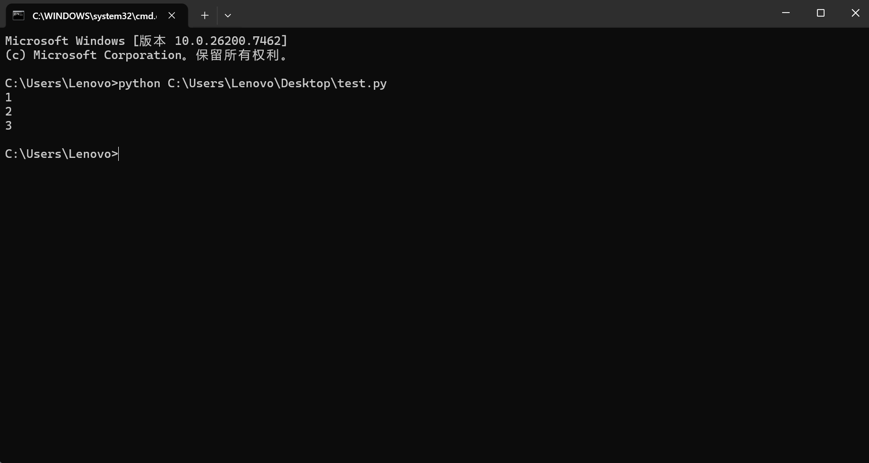 在"命令提示符"程序内,使用python命令,运行它,如图