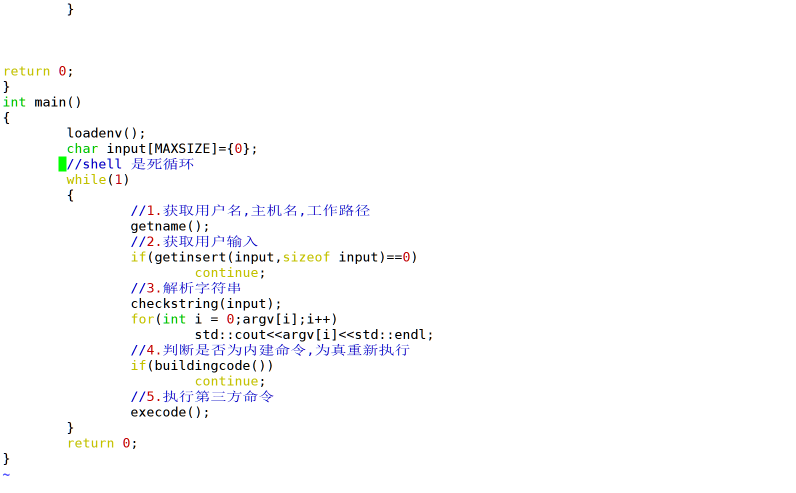在今天我们的shell就不把它设为一个内建命令,如果我们的命令要是支持重定向的话