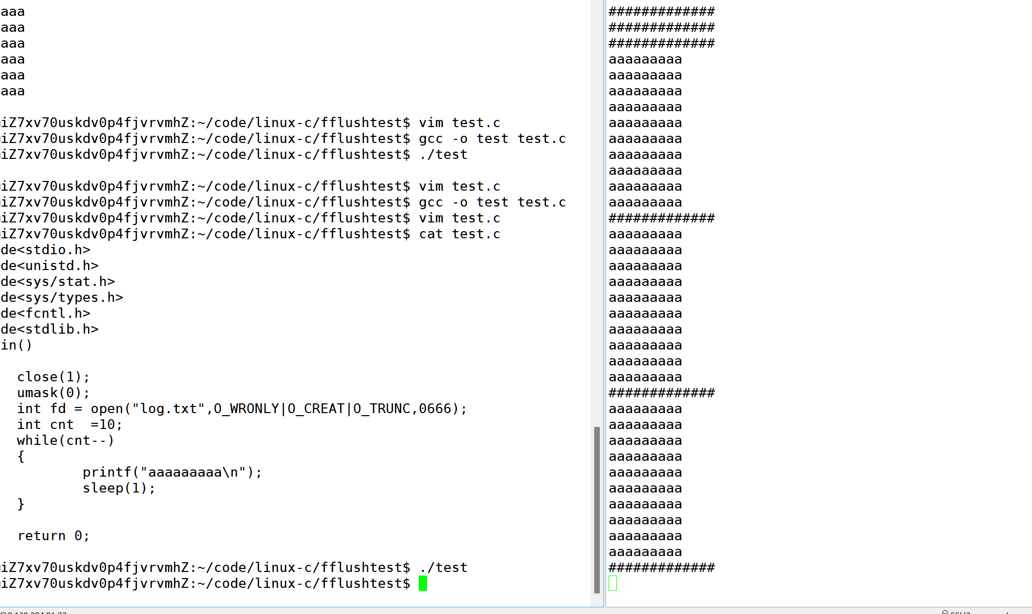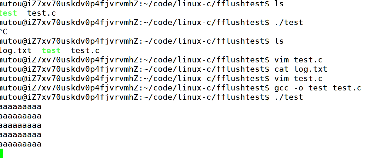 所谓的全缓冲就是当我们向文件进行写入,也就是磁盘io的时候会进行全缓冲的刷新方式当缓冲区满了的情况才会刷新,因为大量的写入需要消耗时间今天就让它等10秒,只用再进程退出的时候才会进行刷新缓冲区,在这里将1关了可以让程序的内容直接写入到文件当中了.