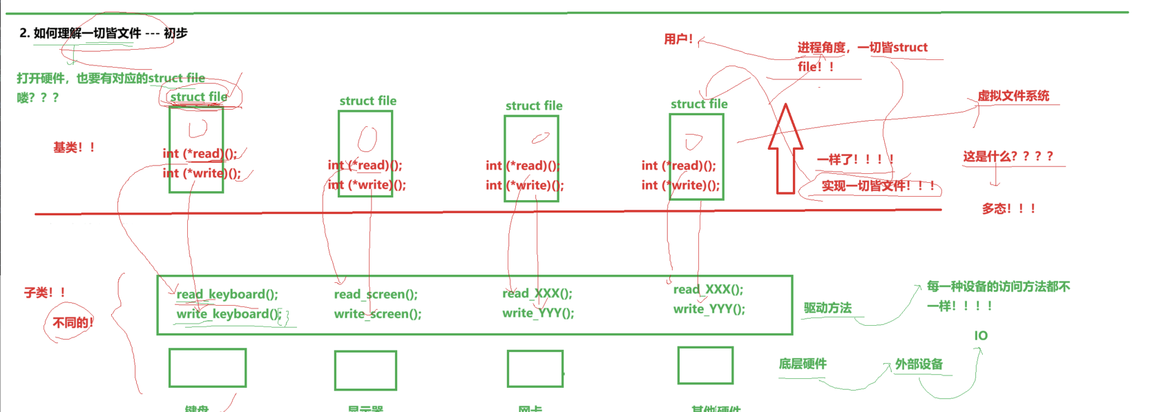在硬件层你怎么实现的我不管,但是在os层我用了同一个标准,当我需要你这种硬件的io操作的时候,我只需要直接调用即可.这样就实现了硬件层和软件层的解耦合