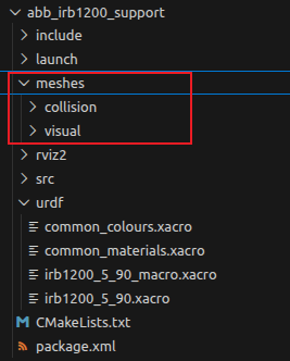 (4)、将abb_ros2-humble\robot_specific_config\abb_irb1200_support\meshes\irb1200_5_90文件夹下的collision和visual文件夹拷贝到abb_irb1200_support/meshes文件夹中
