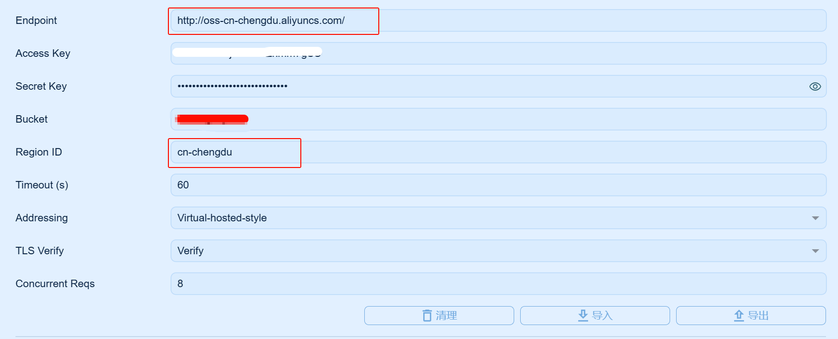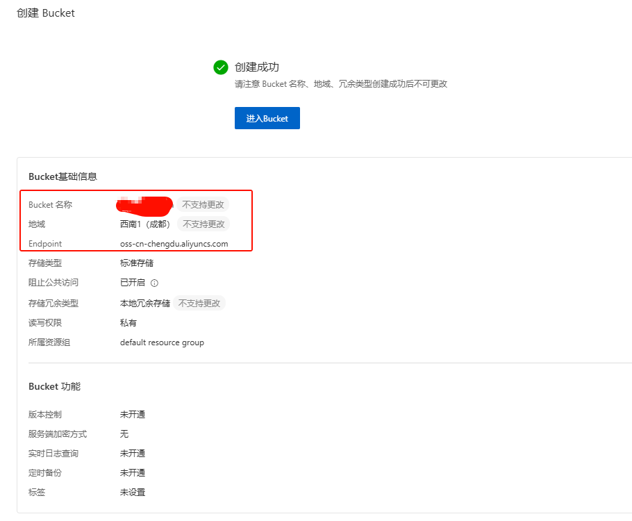 - Endpoint:oss-cn-chengdu.aliyuncs.com