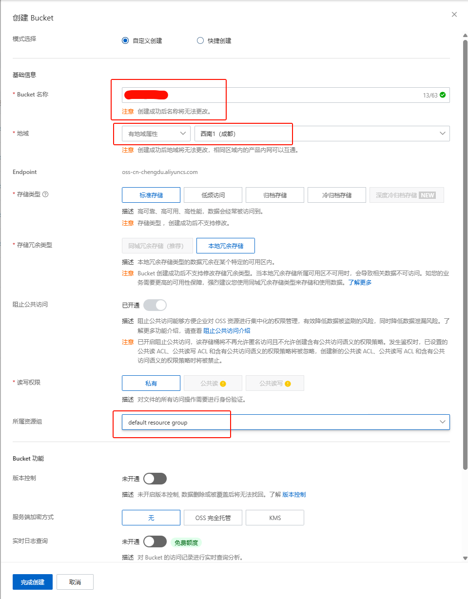 地域和以前一样选在成都,资源组选择默资源组。