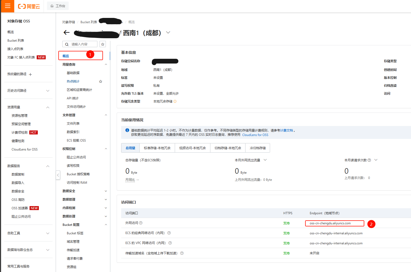 路径:对象存储/Bucket列表/Bucket名称/概览