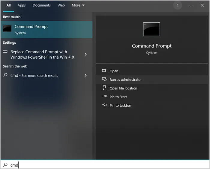 在您的 Windows 11/10 电脑上以"管理员 "身份打开"命令提示符"。