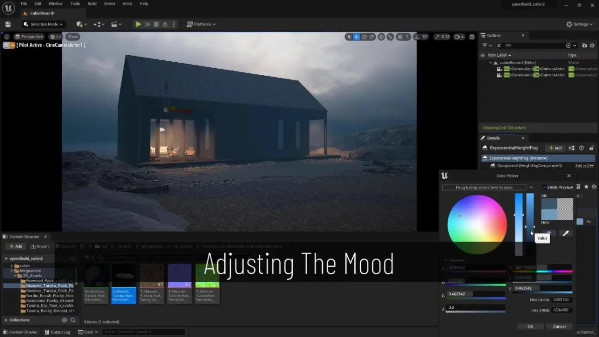 而 Unreal 则将所有调性工具内建于引擎中:体积雾、后期、色调映射、氛围参数、时间变化