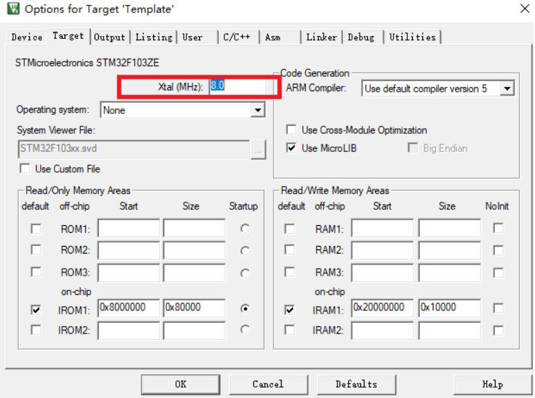 Xtal(MHz):8.0是外部高速晶振的时钟频率。