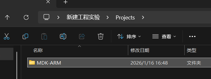 在该目录下创建文件夹,命名为你使用的开发工具,笔者使用的是MDK-ARM,所以创建MDK-ARM文件夹,如下图所示: