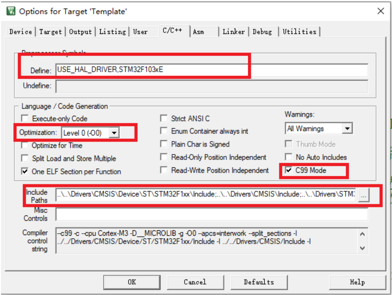 填写Define:USE_HAL_DRIVER,STM32F103xE