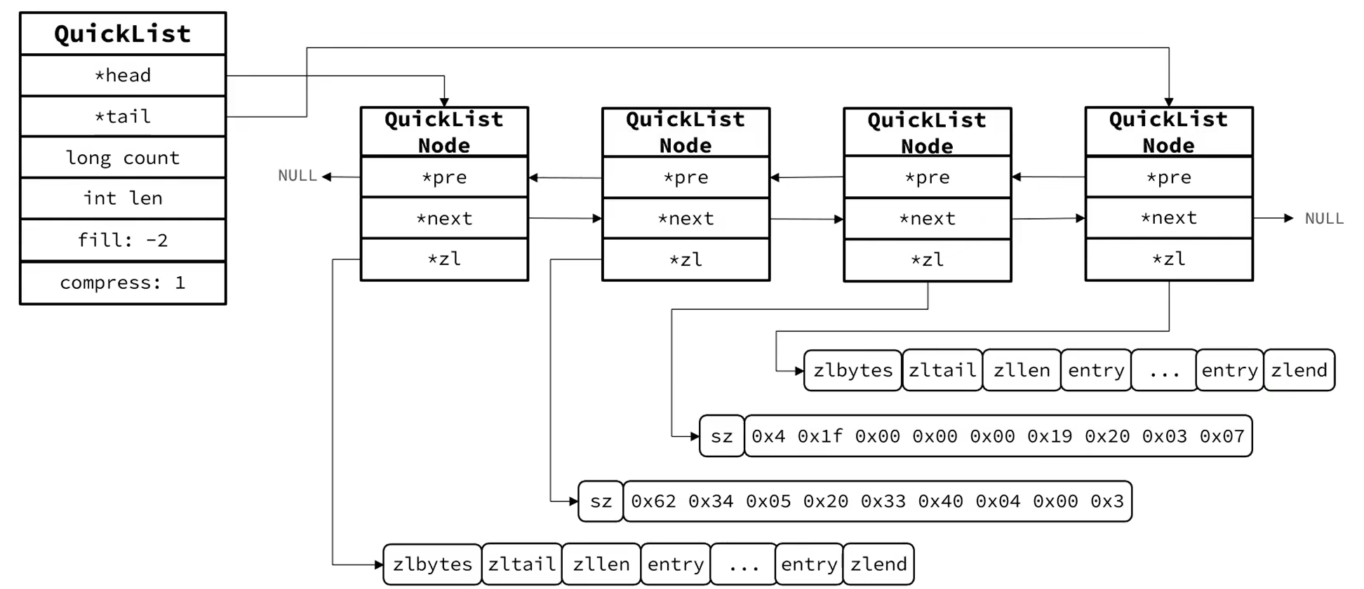 - 2:标示QuickList的首尾各有2个节点不压缩,中间节点压缩