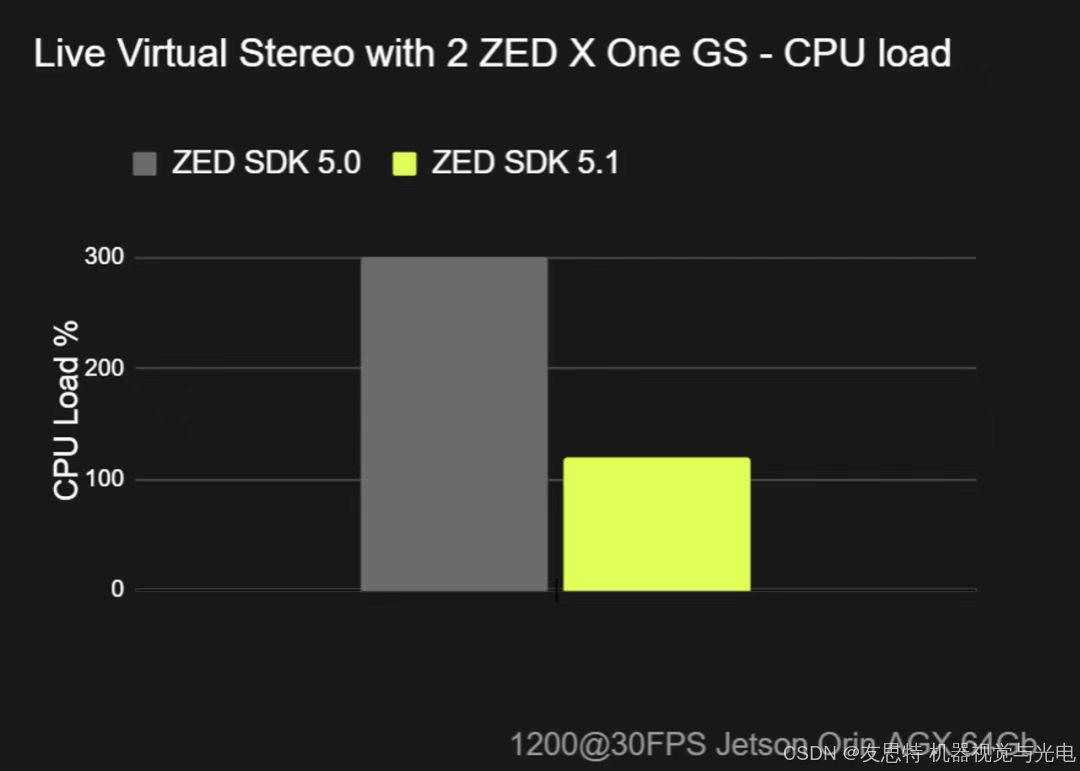 依托全新实时虚拟立体视觉 API(Live Virtual Stereo API),双 ZED X One 相机搭建立体成像对的效率实现质的飞跃,CPU 算力效率提升约 2.5 倍。开发者可通过 SDK 直接配置虚拟成像对,甚至支持未标定模式开展 SVO 录制或原始图像流传输,满足后期校准需求。