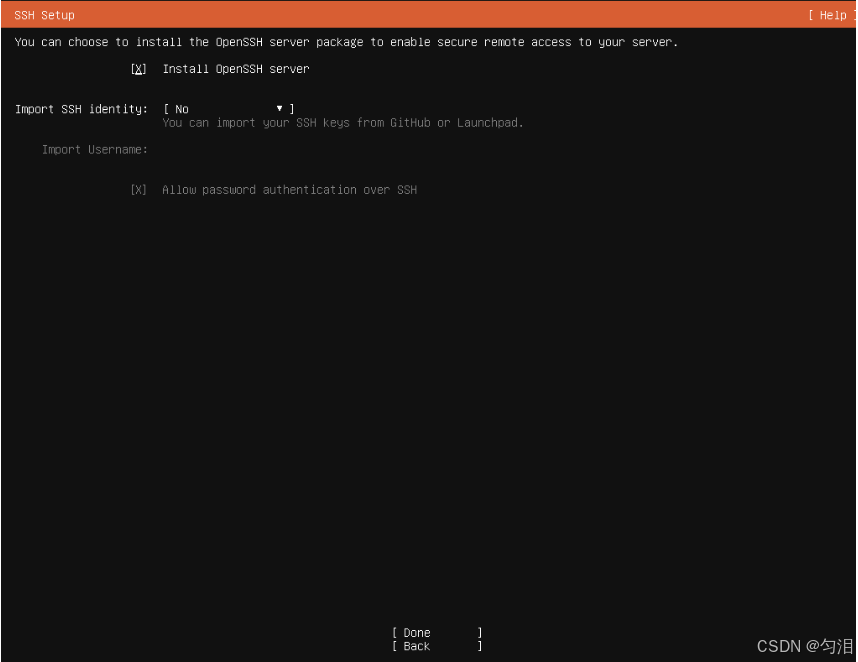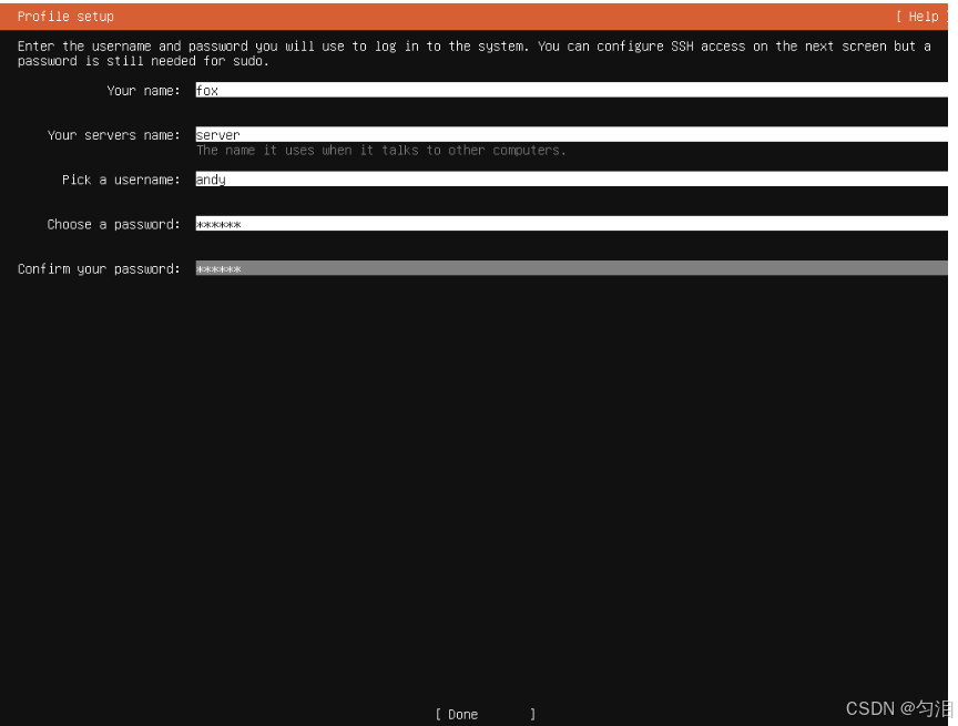 ubuntu-server),点击 "Done"; - 输入用户名(如