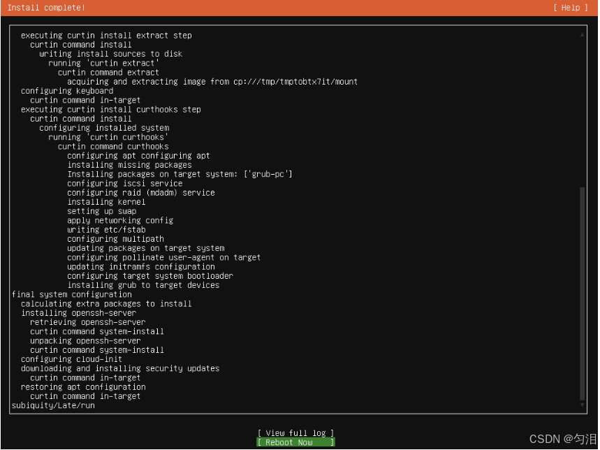 - 安装完成后,选择 "Reboot Now",按回车;