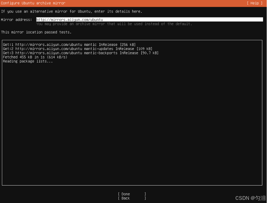 apt安装; - 选择 "Done",按回车。