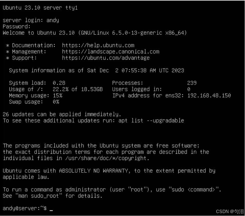 andy@ubuntu-server:~$)。