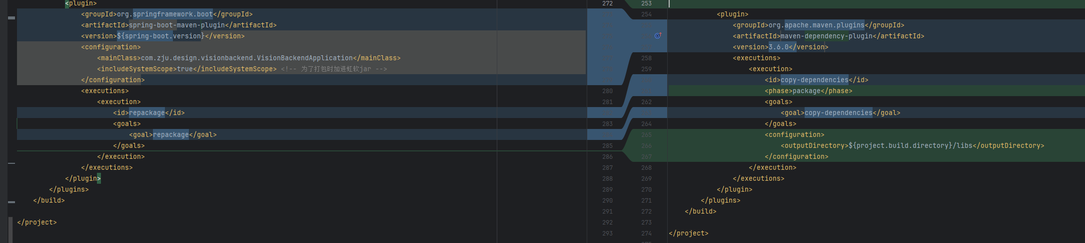 注意最好采用普通打包,即不要使用repackage打成fat jar, 因为jpackage识别不了fat jar包的内部结构. pom.xml中相关改动示意如下: