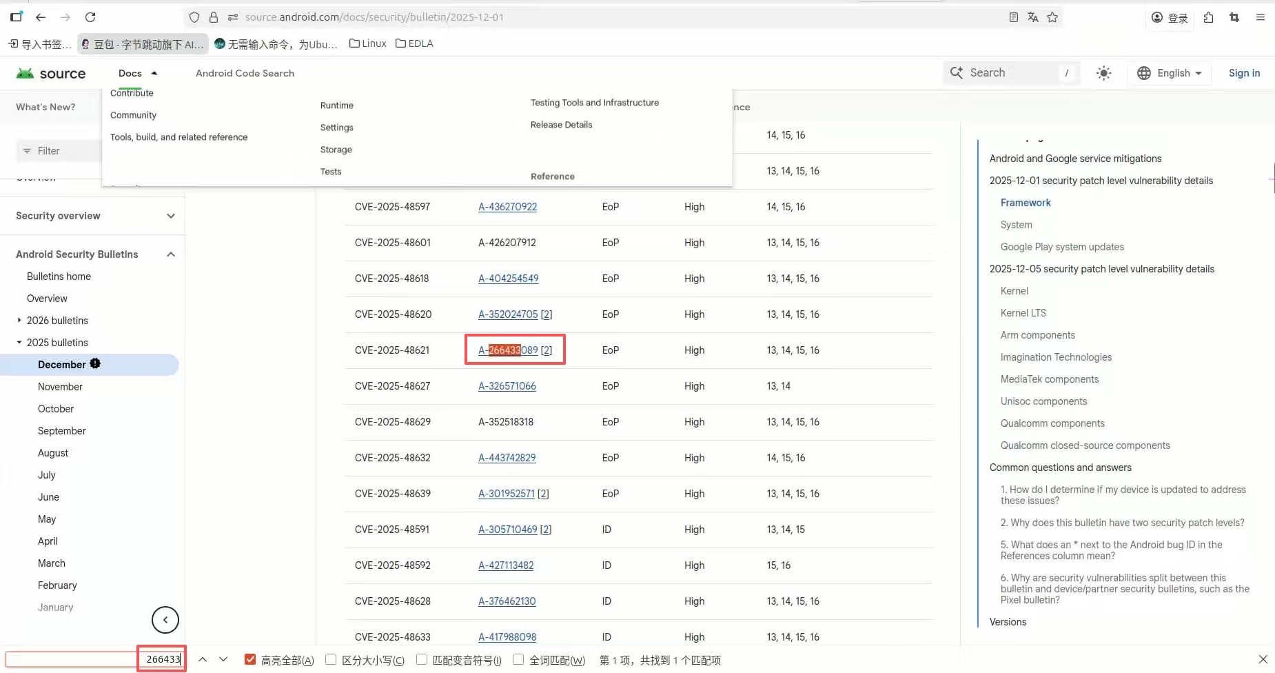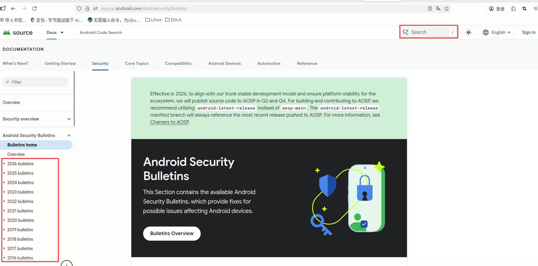 查询补丁的网址入口(需要VPN网络):https://source.android.com/docs/security/bulletin