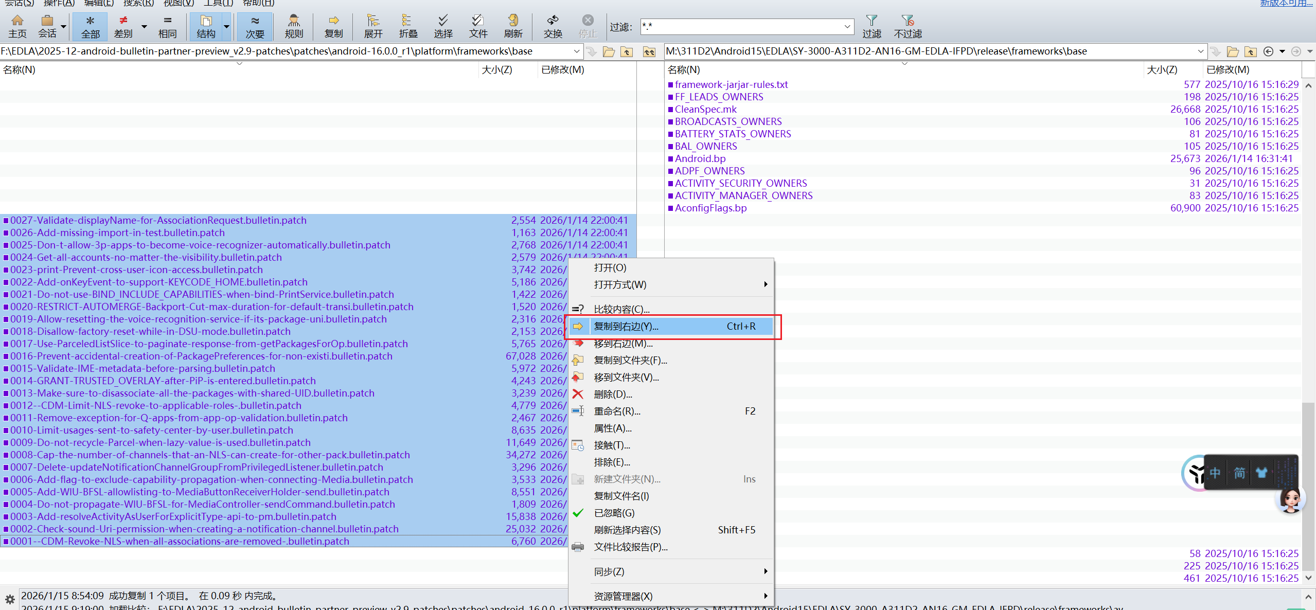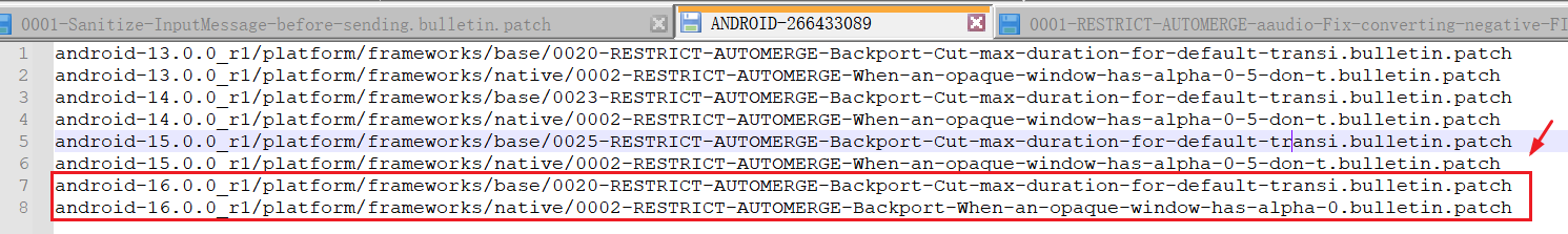 比如我这里的Android16系统,只需要导入android-16.0.0_r1里面的XXX.patch 文件。
