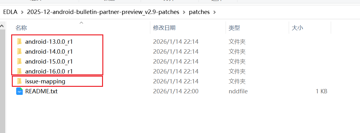 这些目录下的补丁是设备类型专属的安全修复,不包含在根目录通用补丁中Android Open Source Project