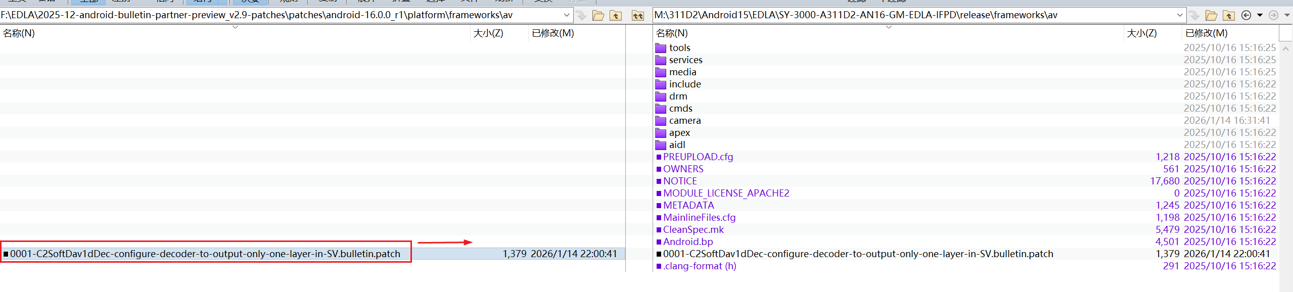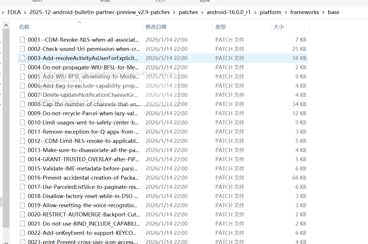 下面是25-12月framework/base目录下的补丁,如下图所示: