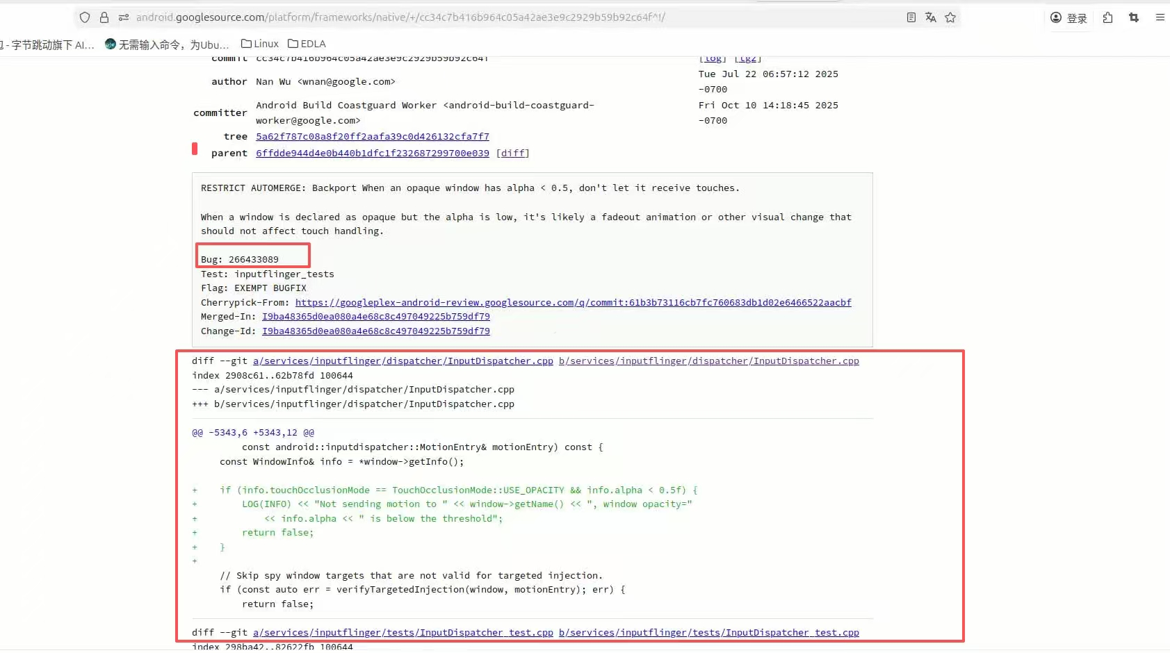到这里就能看到某个具体的Google 安全补丁问题单的具体修改内容了。
