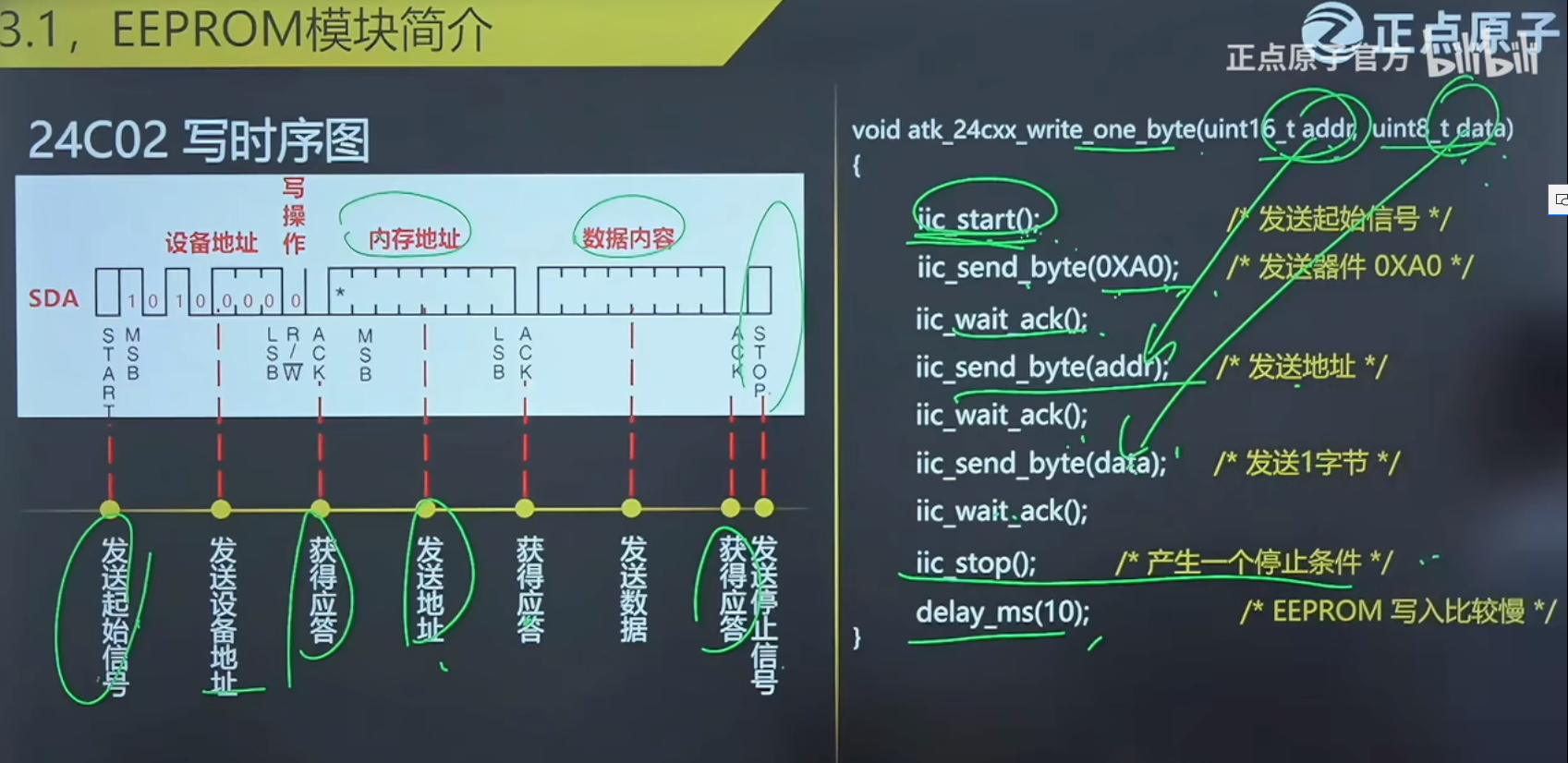 iic_send_byte(0XA0); /* 发送器件 0XA0 */