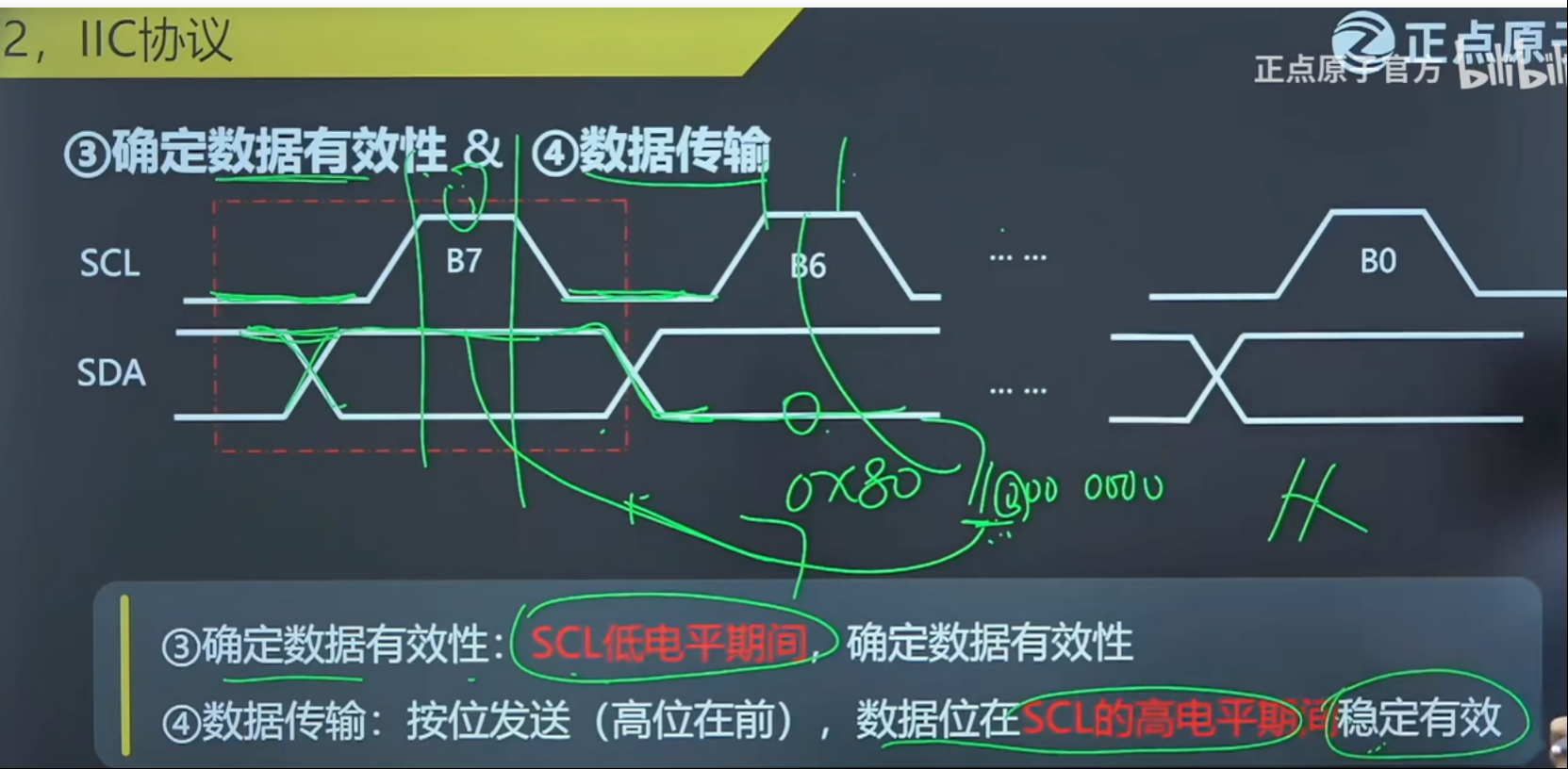 IIC_SDA(0); /* SCL高电平时,SDA拉低,产生起始信号 */