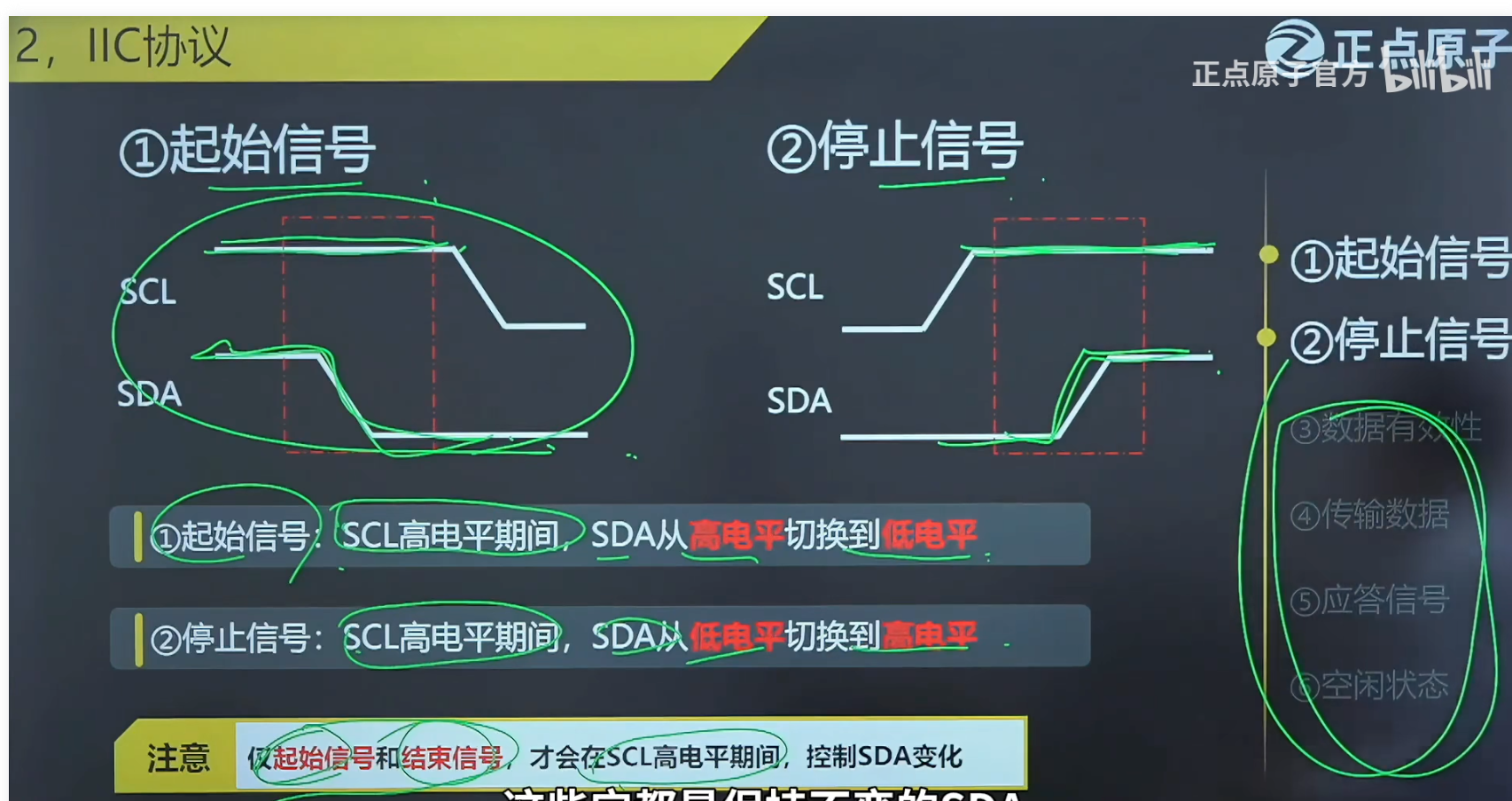 * @note 起始信号时序:SCL高电平时,SDA从高电平拉低