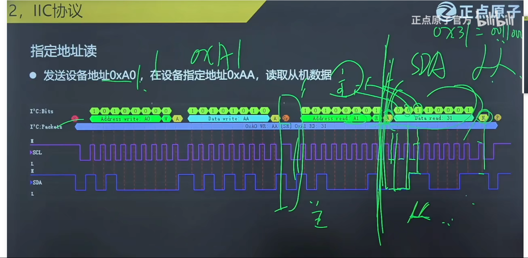 iic_send_byte(0XA1); /* 进入接收模式,IIC规定最低位是0,表示读取 */