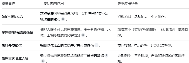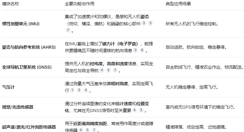 无人机的"眼睛"和"耳朵"是其身上搭载的各种传感器模块。它们主要分为两大类:一类用于感知无人机自身飞行状态(如姿态、高度、位置),另一类用于执行特定任务(如航拍、测绘、巡检)。