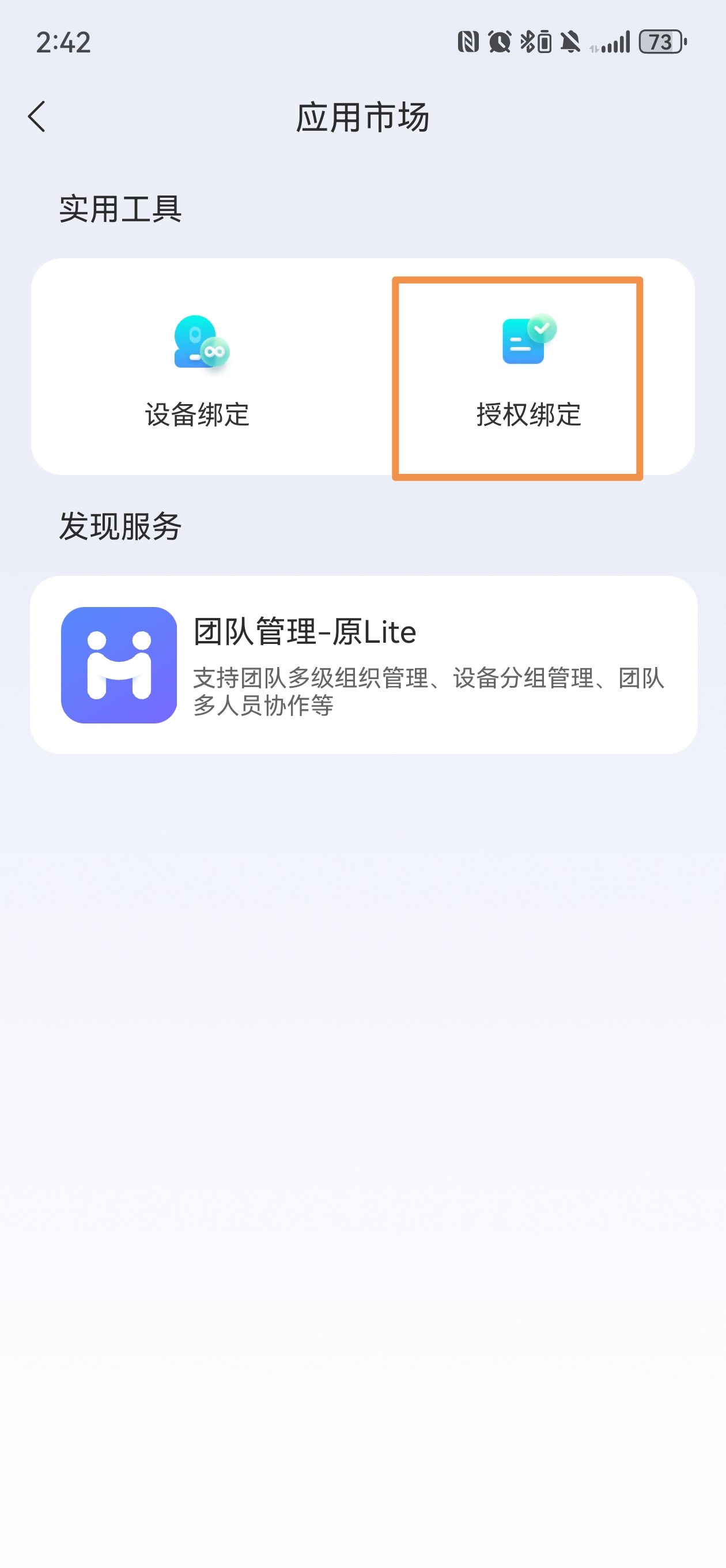 - Step 2 :进入"萤石云视频APP-我的-工具-应用市场"工具中的授权绑定入口。