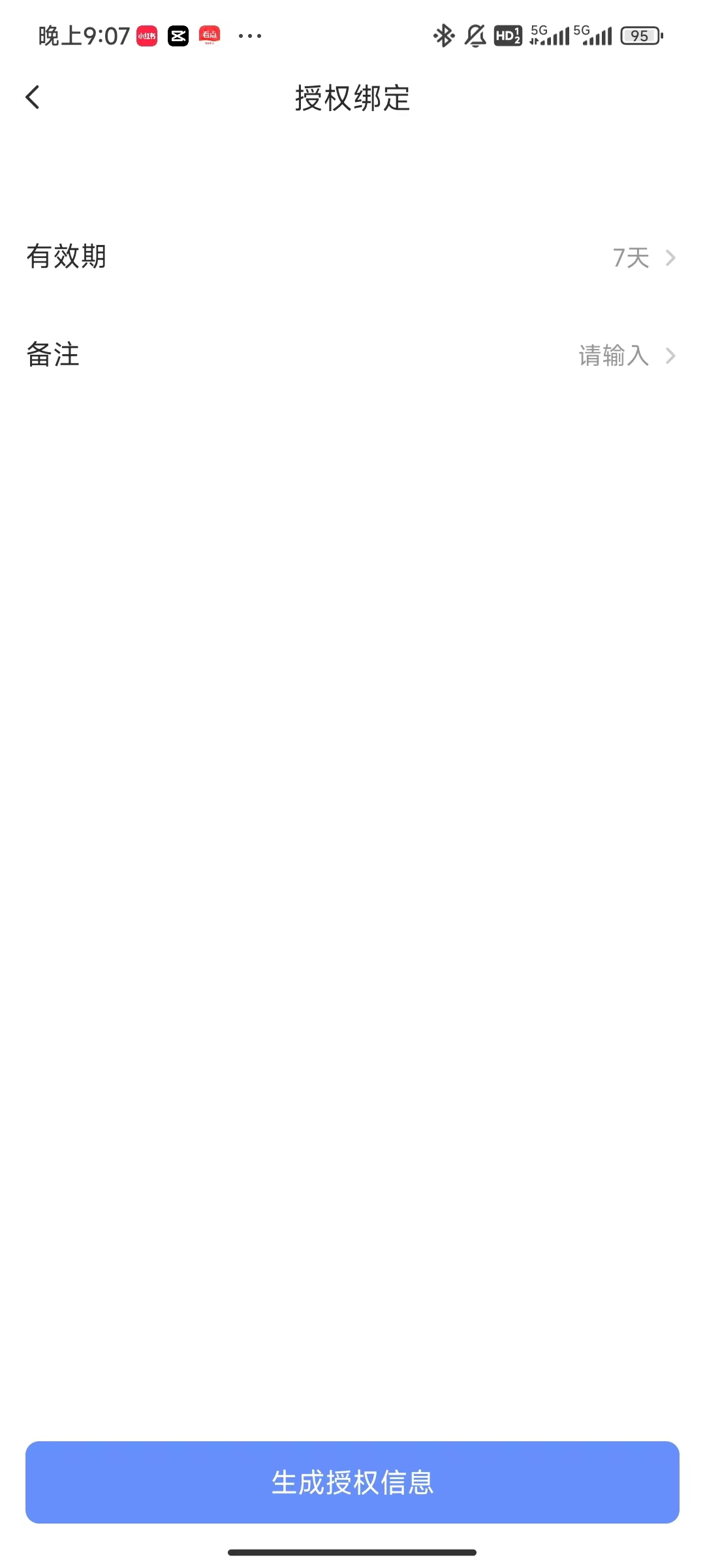- Step 3 :选择授权有效期以及备注信息后,点击生成授权信息,即可生成授权二维码以及授权APP。