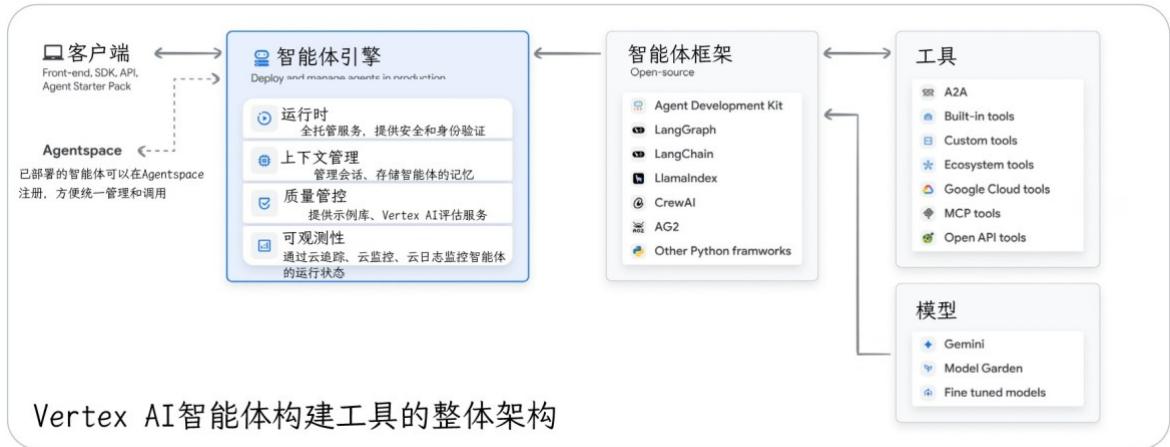 部署("身体与腿脚"):在笔记本电脑上搭建智能体原型很简单,但要让它成为可靠、可访问的服务,就必须进行生产环境部署。这包括将智能体部署在安全可扩展的服务器上,并集成监控、日志、管理等关键生产级服务。部署完成后,用户既能通过图形界面访问智能体,其他智能体也能通过"智能体对智能体(A2A)"API进行程序化调用。