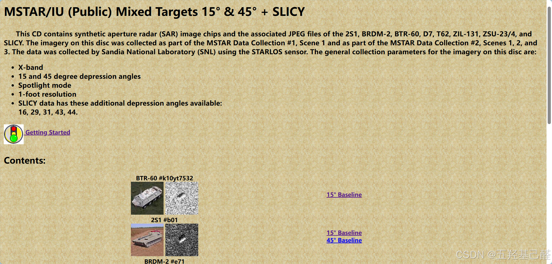 MSTAR (The Moving and Stationary Target Acquisition and Recognition) 数据集由美国桑迪亚国家实验室 (Sandia national laboratory) 在二十世纪90年代收集并发布。