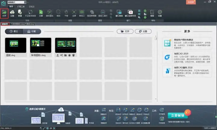 进入软件的起始页面,然后点击菜单打开,选择需要查看的图纸。