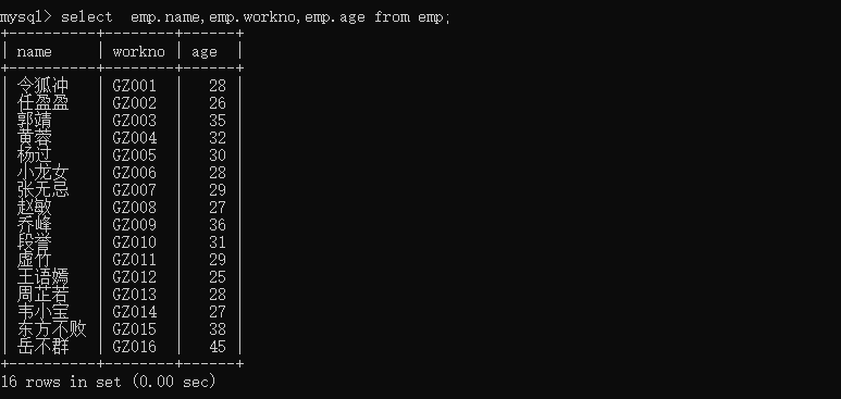 -- 4.查询所有年龄小于等于35的姓名和年龄,并对查询结果安年龄升序,如果年龄相同按照入职时间降序