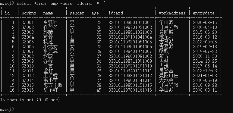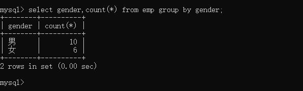 -- 1.根据员工的性别分组,统计男性员工和女员工的数量