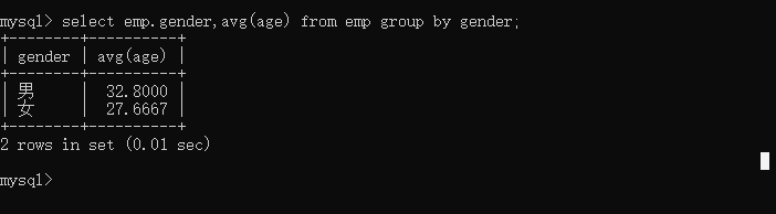 -- 2.根据性别分组,统计男员工和女员工的平均年龄