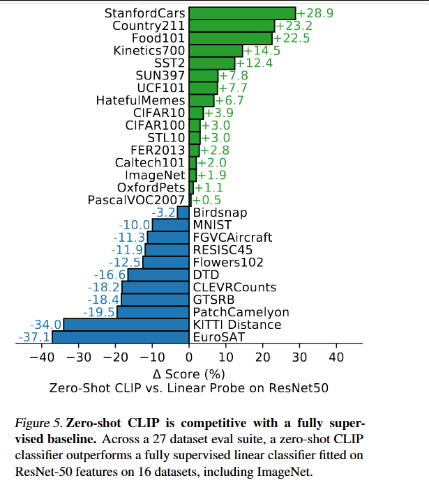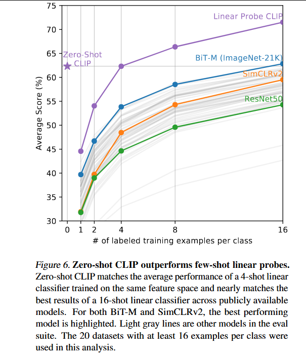 因为要进行零样本迁移,数据量很大,然后为例分析性能,有需要与很多已有的实验进行比较(实验采用了不同的数据集合)。零样本迁移:用自然语言描述构建分类器