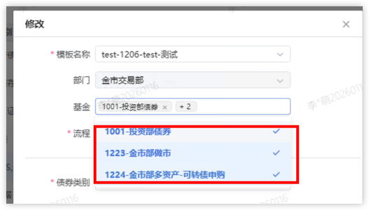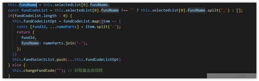 现在将后端返回的fundName字符串进行切割 做成下拉选项对修改的基金多选框进行填充 保证 框中的值能够和下拉框对应上实现反显